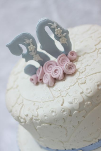 | Wedding Anniversary Cake for Datuk E & Datin N plus 50 cuppies bearing monograms of their initials, which I didn't get to snap, coz I forgot, duhh! |